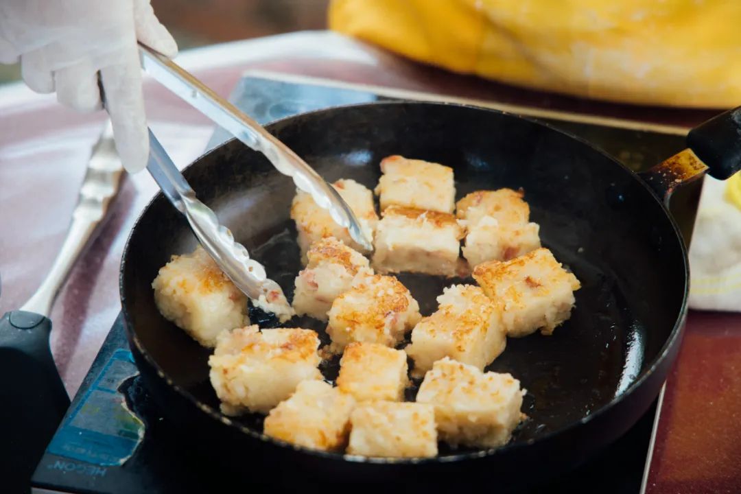 香糯的萝卜糕有步步高升的寓意,是春耕时必吃的小食。