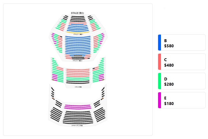 * Only $580, $480, $280 and $180 tickets are available for pre-sale.