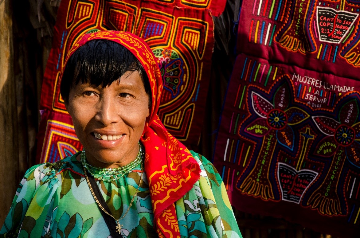 The Molas, a traditional textile made from layers of colored fabric crafted to form patterns and pictures inspired by the Guna indigenous cosmogenic beliefs. The tradition of the Guna Yala Mola comes from the traditional designs Guna Yala women used to paint on their bodies (when there were no textiles at hand, these came later with the Spanish conquistadors), these colorful geometrical designs were later transferred on sewn pieces of cloth using a technique known as “reverse application”. The molas are often made with recycled fabric.