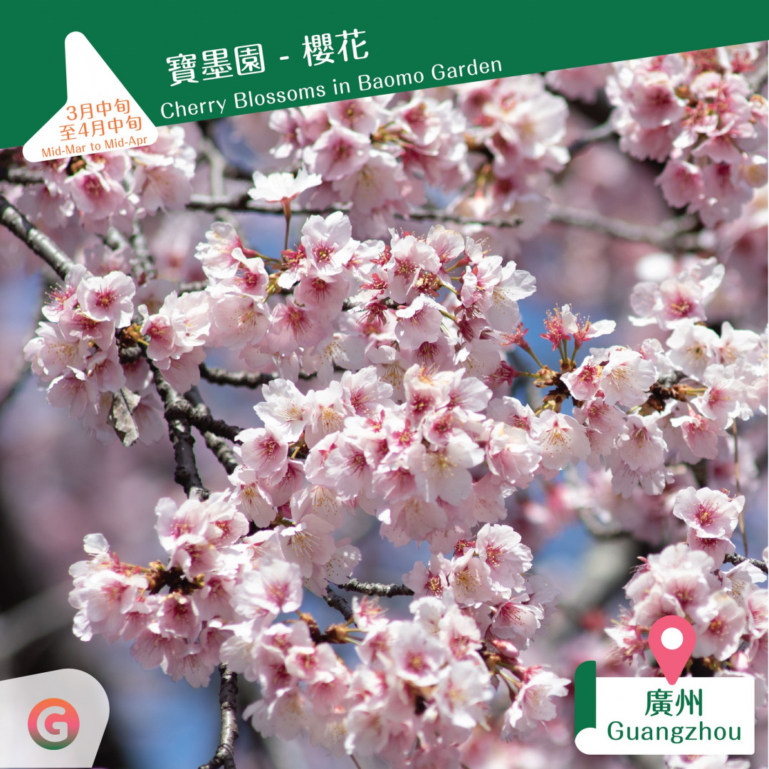 宝墨园是广州樱花盛开之地,培育数种樱花,漫天樱舞,春花似海衬托着古色古香园林美景,有如置身在花花世界之中。