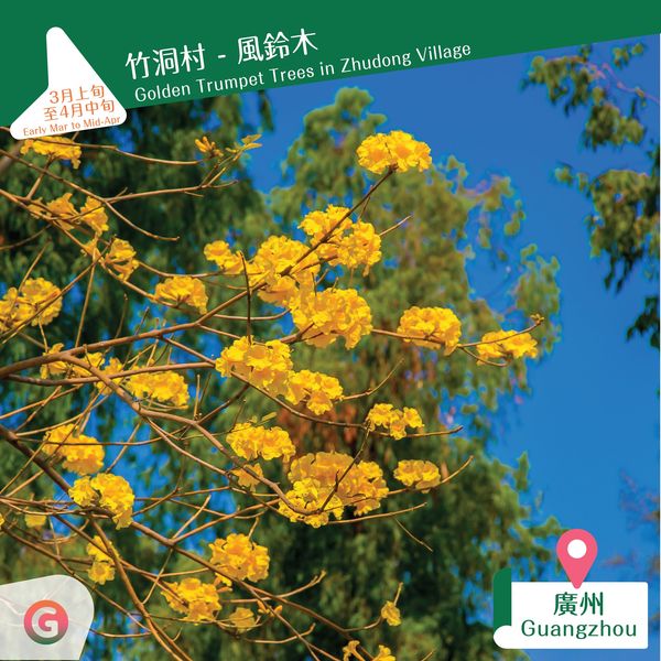 【旅淘】首选推介必定是花都区赤坭镇嘅竹洞村!您只要抬头一望,全部都是金黄色风铃木随微风摇曳 ;低头放眼就是遍野油菜花田,您完全沉浸於金黄花海之中。