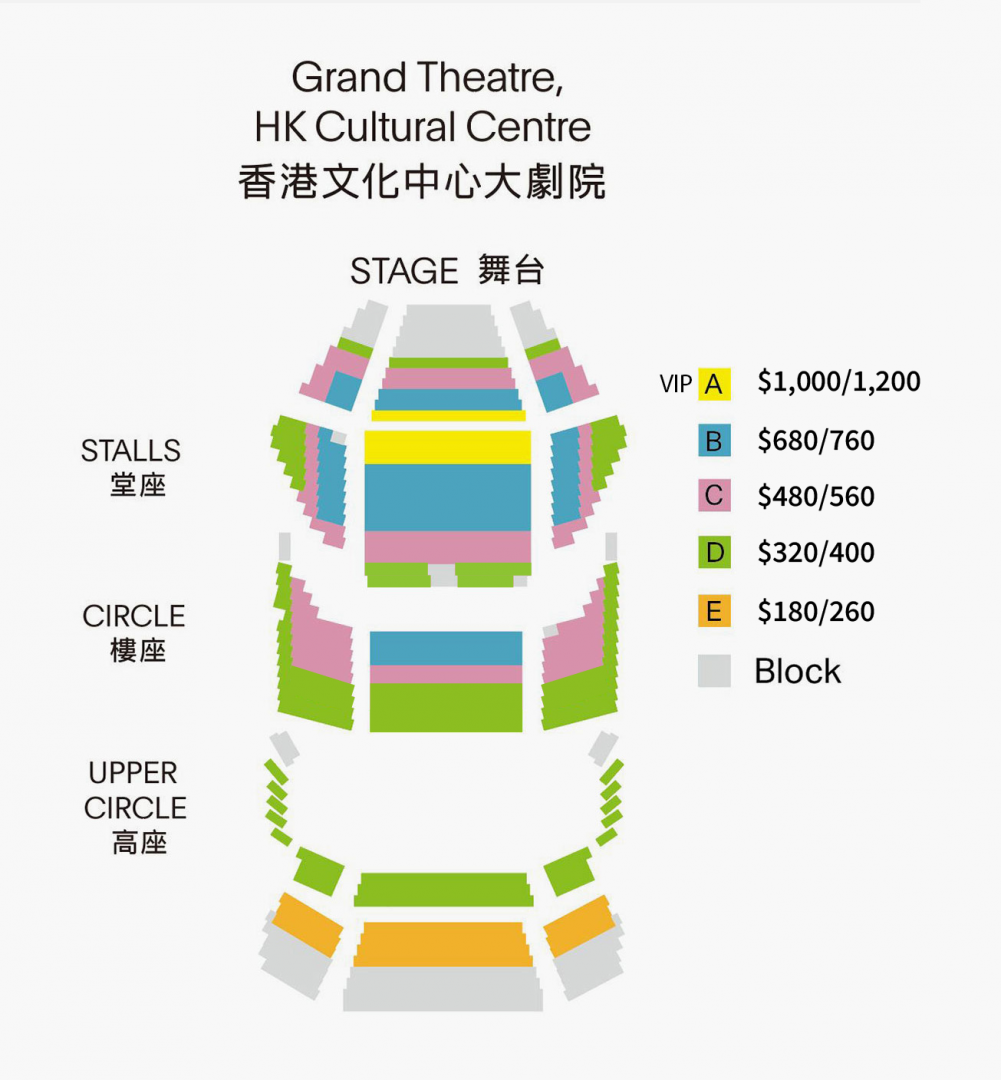 票价:*港币$560 / $400 / $260