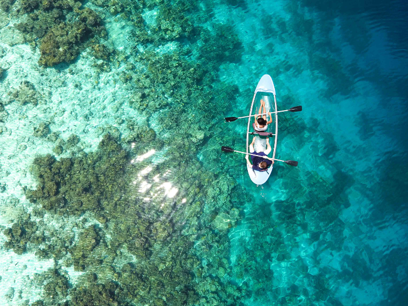马尔代夫的美丽不仅体现在水面上。马尔代夫拥有地球上约 5% 的珊瑚礁,这些珊瑚礁由软珊瑚和硬珊瑚组成,色彩斑斓。珊瑚礁是上千种鱼类的家园。蝠鲼和鲸鲨等大型中上层鱼类受到随水流而来的丰富营养物质的诱惑,也在马尔代夫安家落户。