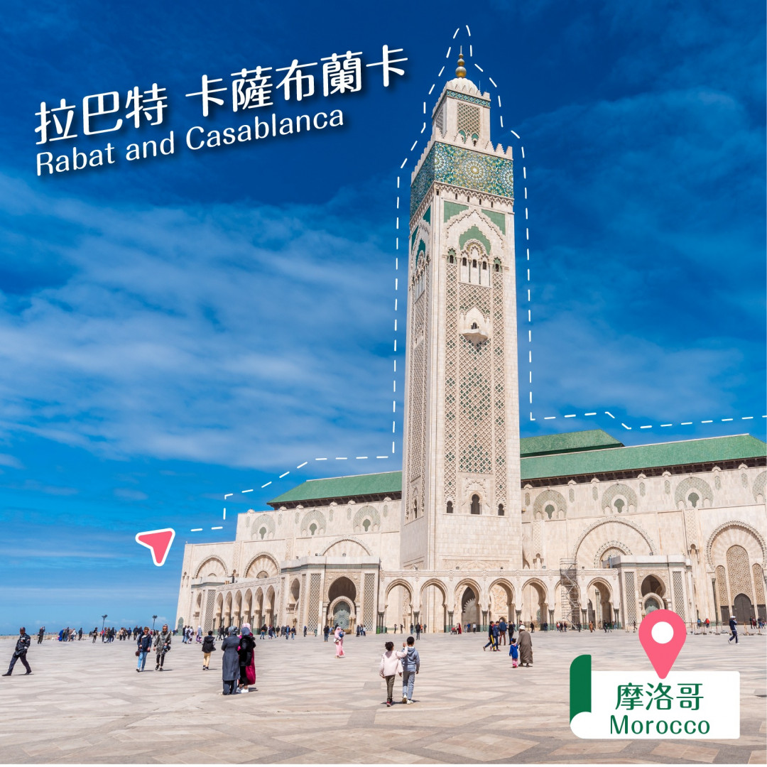 沿海白色城市卡萨布兰卡享负盛名,当地的哈桑二世清真寺建於海上,可容纳最多十万人同时礼拜。