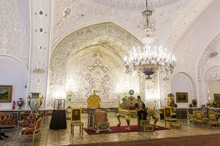 整座宮殿共有七棟建築,其中最著名的便是作為王室起居生活用的鏡廳。鏡廳內佈滿鏡子,只需一點光源,便可以令整個廳室金光閃閃,仿佛走進歷史感受昔日的輝煌。在全座宮殿最高的太陽宮,可以俯瞰德黑蘭城市全景,黃昏時分景致更是美不勝收,來到伊朗絕對不能錯過。