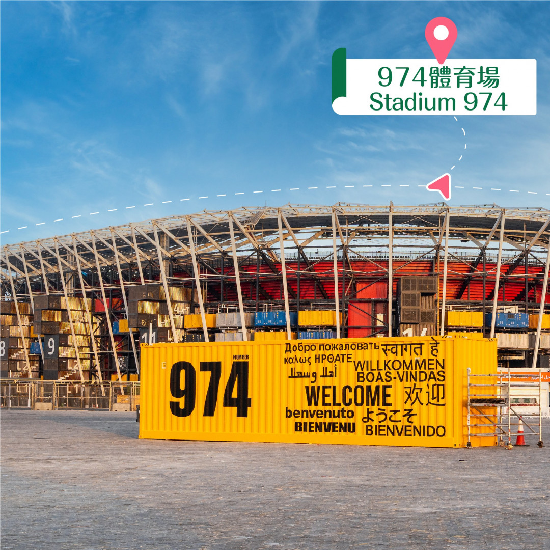 974 除了代表卡塔爾國際區號,亦是場館建造使用的貨櫃數量。賽事落幕後,場館建材可拆除再利用,是世界盃史上第一座可拆卸式的場館。